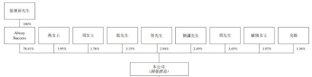 主要控股股东为由张运裕先生控有的AlwaysSuccess持股约78.91%;