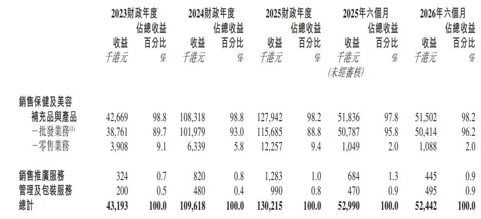 公司的收益来自(i)销售公司自有品牌及第三方品牌的保健及美容补充品与产品;(ii)向第三方品牌商或品牌商集团提供销售推广服务;及(iii)提供管理及包装服务
